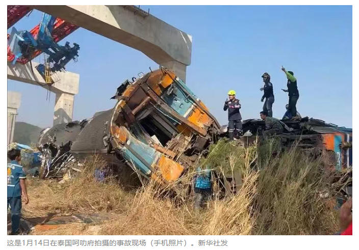 当地时间1月14日,泰国东北部呵叻府西基县一处高铁施工现场发生事故,一台巨型起重机倒塌砸中正在行驶的特快列车,造成22人遇难、70人受伤。列车两节车厢脱轨并起火,伤者被送医救治,相关部门已介入调查。