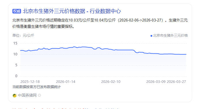 | 生猪 | 10.04 | 公斤 | 北京东城区 | 2026-03-27 |