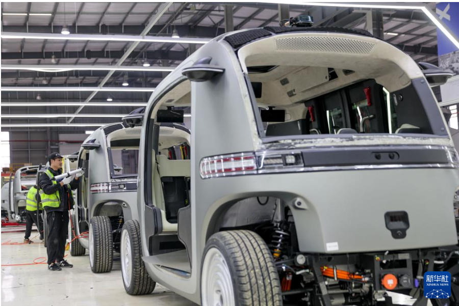 12月16日,工人在贵州省贵阳高新区电子信息产业园内的贵州翰凯斯智能技术有限公司无人驾驶小巴生产车间作业。 时值年末,各企业铆足干劲,加紧生产,力保完成全年生产任务。 新华社发(袁福洪 摄)
