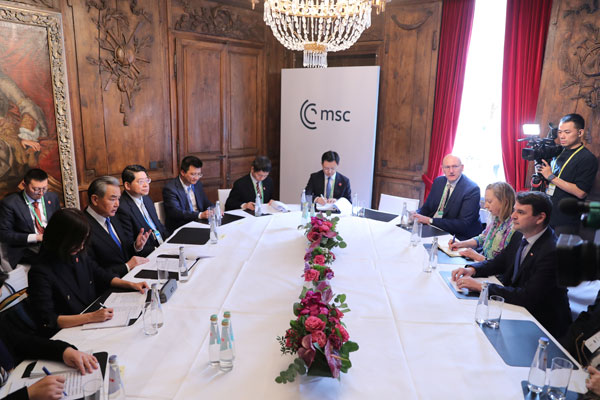 当地时间2026年2月14日,中共中央政治局委员、外交部长王毅在出席慕尼黑安全会议期间应约会见捷克副总理兼外长马青卡。