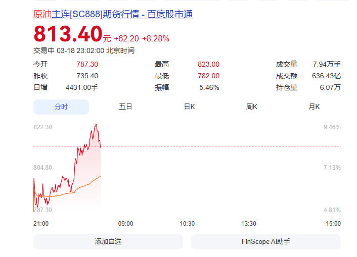 WTI原油涨3%,报98.354美元/桶;布伦特原油涨5.36%,报104.716美元/桶。