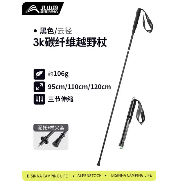 深圳市龙城户外文化体育发展有限公司发布的北山狼越野跑登山杖专业户外超轻碳纤维折叠男女轻量装备登山手杖图集库