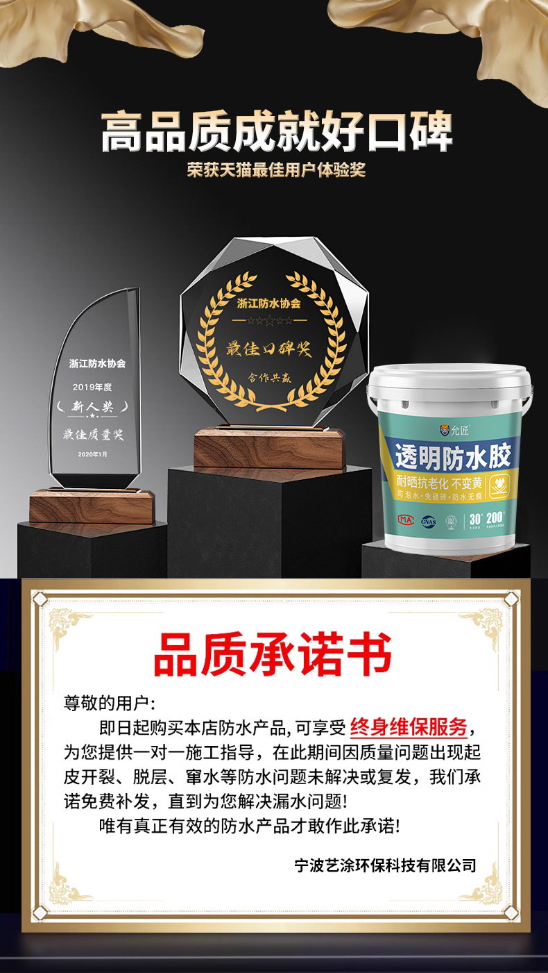 宁波艺涂环保科技有限公司发布的透明防水胶卫生间窗台内外墙屋顶防水涂料补漏防漏材料图集库